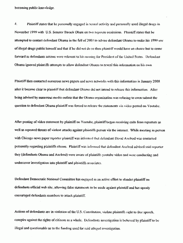 Obama absent from November 4 1999 Illinois Senate, Larry Sinclair cocaine allegations, Larry Sinclair lawsuit