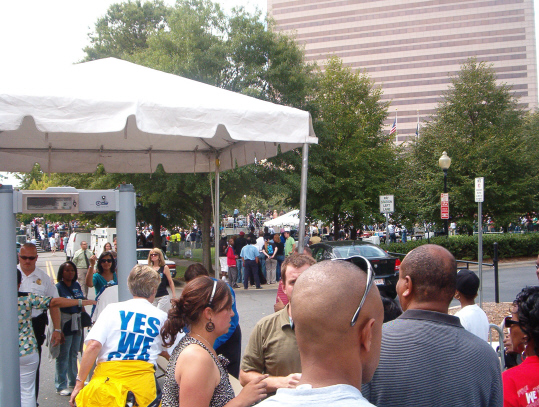 Published September 21, 2008 at 539 × 407 in Charlotte NC, Obama rally, Sunday, September 21, 2008, Large crowd, Few protestors, Anti Abortion, Support Military, Crowds misled, Obama has fooled many, Good people fooled