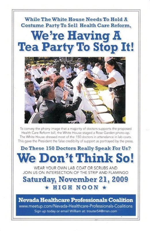 Published November 16, 2009 at 557 × 856 in Las Vegas Protest Obamacare, November 21, 2009, Nevada Healthcare Professionals Coalition, Las Vegas Blvd, Las Vegas NV, Clark County, Harry Reid Senate Bill