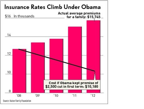 “Health Premiums Up $3,000; Obama Vowed $2,500 Cut”