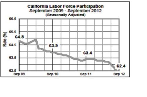 California has the third highest unemployment rate in the country at 10.2 percent. CA has been getting a lot of press recently for suspicious reporting the prior week that skewed the US Labor Dept. unemployment claims report. What you are probably not getting from the media is the fact that since February 2012, the labor force participation rate has dropped more than the unemployment rate.