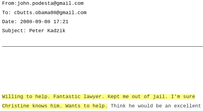 Podesta: DoJ’s Peter Kadzik “Kept me out of jail.” #PodestaEmails https://wikileaks.org/podesta-emails/emailid/3933#efmAAGABs …