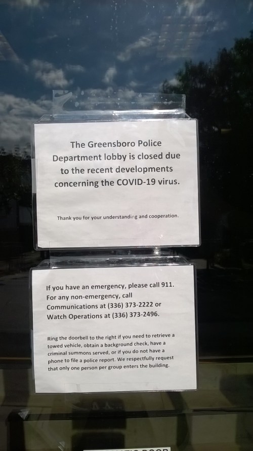 After the first I40 criminal act, I attempted to visit the Greensboro Police Dept. and found that it was closed.