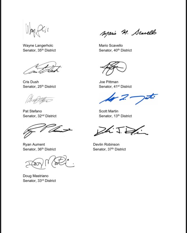 Published January 6, 2021 at 1125 × 1401 in Pennsylvania Senate letter stating “PA election results should not have been certified” and requesting Electoral College delay, View and read