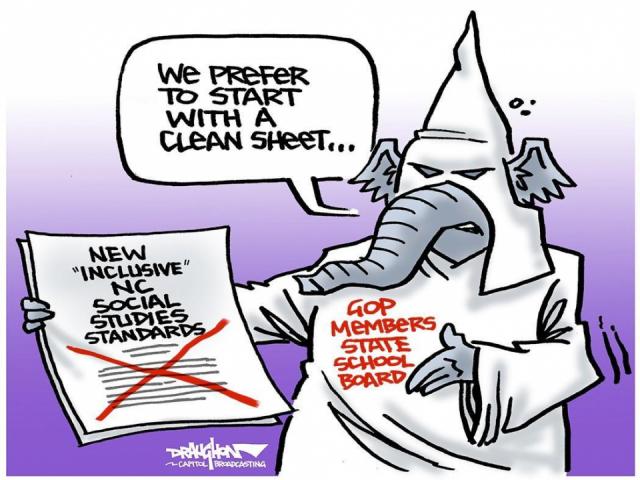 Published February 4, 2021 at 640 × 480 in NC WRAL KKK cartoon classic guilty dogs barking loudest, Democrat party of slavery secession and KKK, Republican party of Lincoln emancipation, Byrd example