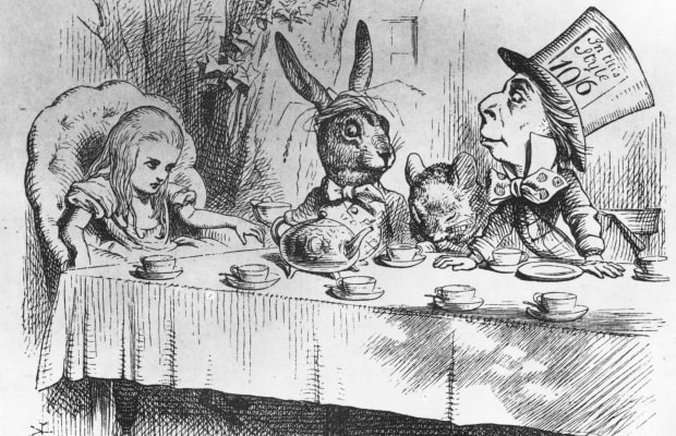 alice-the-march-hare-the-dormouse-and-the-mad-hatter-at-the-latters-tea-party-from-alice-in-wonderland-by-lewis-carroll-alice-in-wonderland—1st-edition—pub-1865-illustration-by-j-tenniel-photo-by-