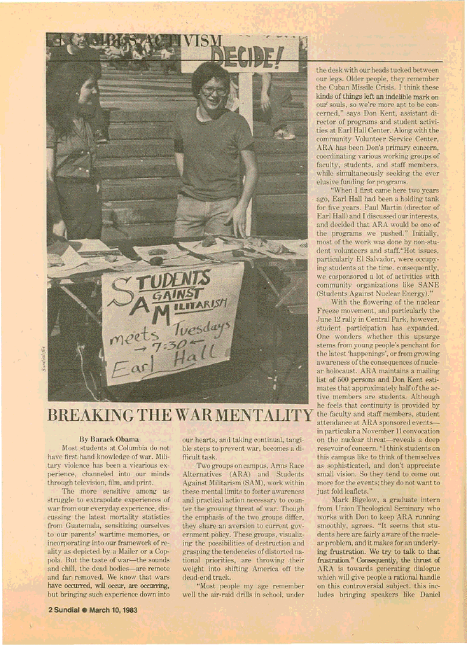 The article allegedly written by Barack Obama while at Columbia and published in March 10, 1983 is interesting without being linked to other aspects of Obama’s past.