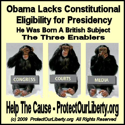 Congress Courts Media, Obama not eligible, Billboard, December 1, 2009, Barack Obama not natural born citizen, US Constitution, Father Kenyan British, No birth certificate, Kerchner V Obama and Congress, Obama spends millions to avoid